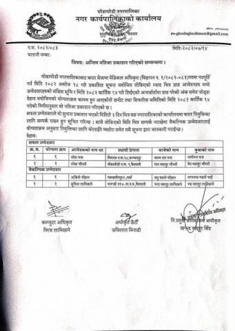 अन्तिम नतिजा प्रकाशन गरिएको सम्बन्धमा ।