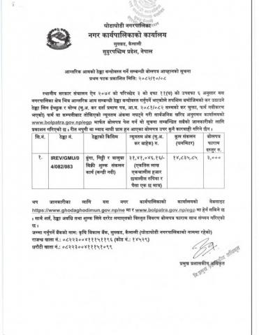 » आन्तरिक आयको ठेक्का बन्दोबस्त गर्ने सम्बन्धी बोलपत्र आह्वानको सूचना । ठेक्का नंं. IREV/GMU/04/082/083