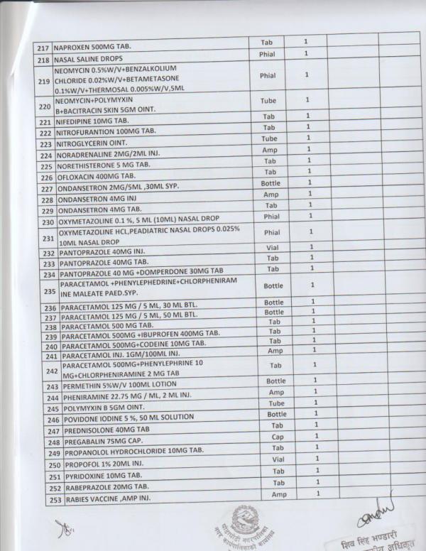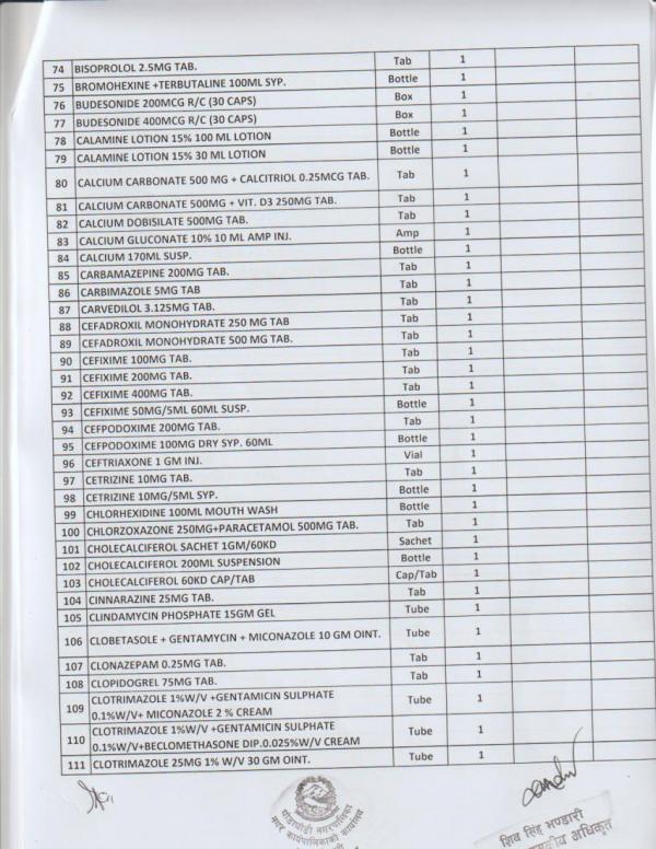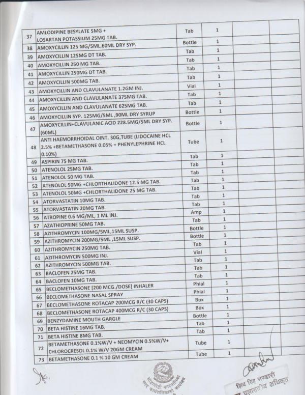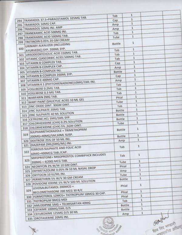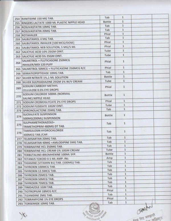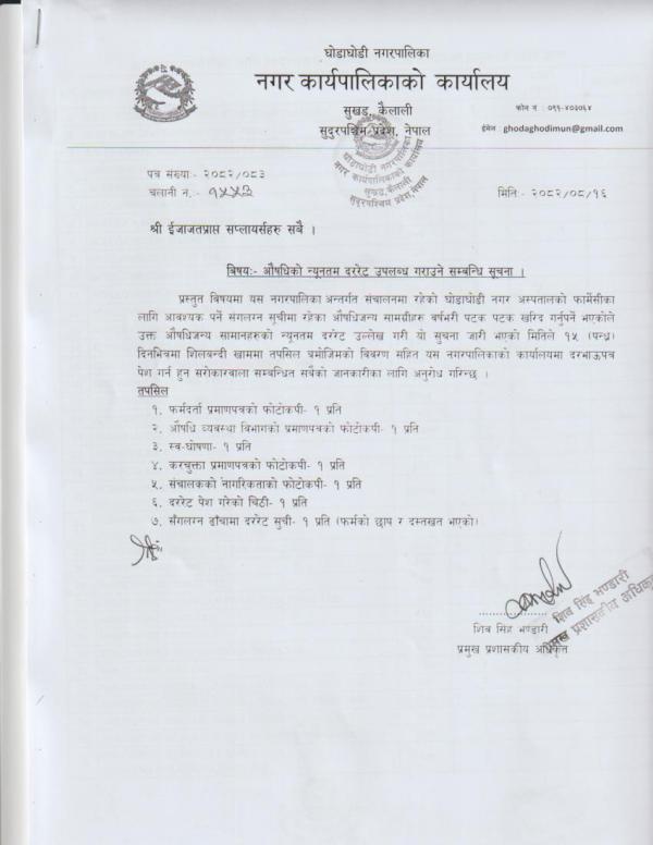 औषधिको न्युनतम दररेट उपलब्ध गराउने सम्बन्धमा ।
