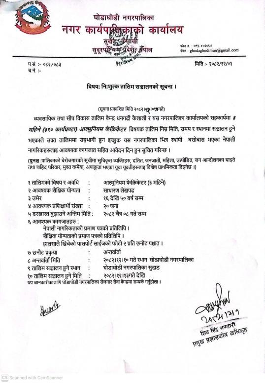 » निःशुल्क तालिम सञ्चालनको सूचना ।