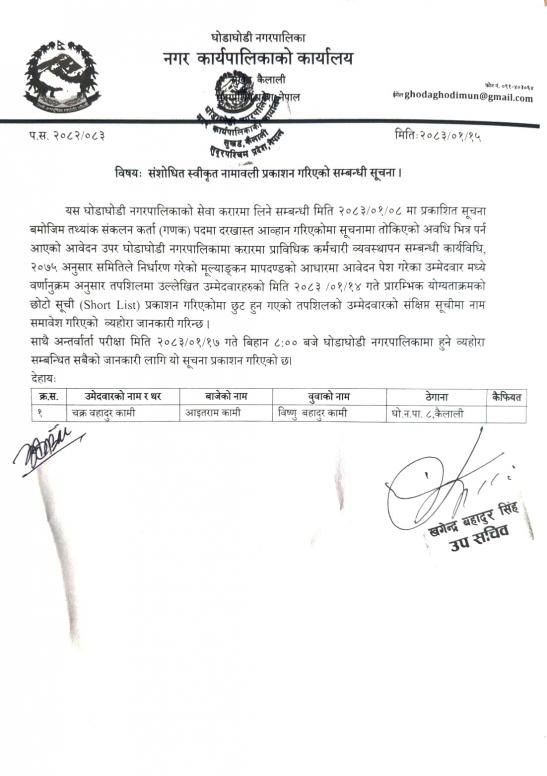 » संशोधित स्वीकृत नामावली प्रकाशन गरिएको सम्बन्धी सूचना ।