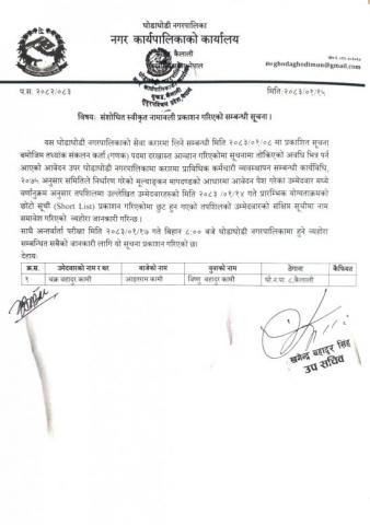 छोटो सूची प्रकाशन तथा अन्तर्वाता परीक्षा तोकिएको सम्बन्धी सूचना ।