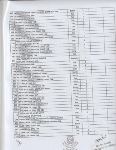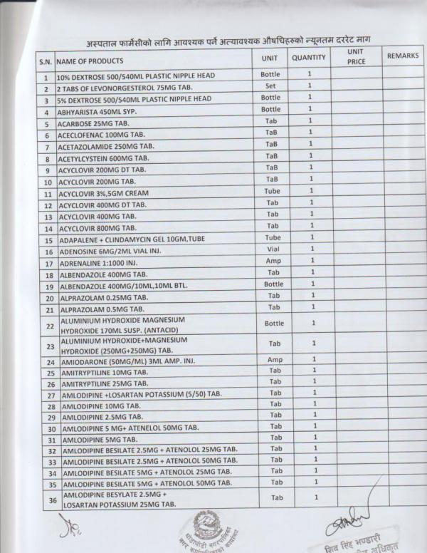 औषधिको न्युनतम दररेट उपलब्ध गराउने सम्बन्धमा ।