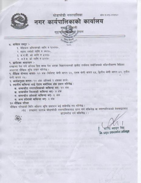 घोडाघोडी नगरपालिकाको नागरिक वडापत्र