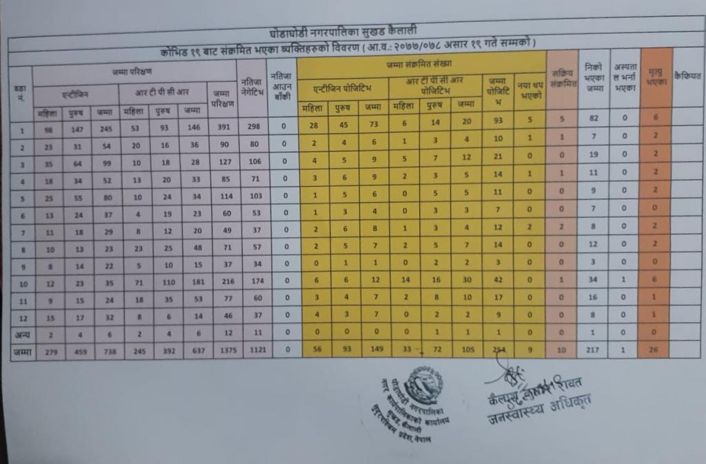 कोभिड १९ बाट संक्रमित भएका व्यक्तिहरूको विवरण २०७८ असार १९