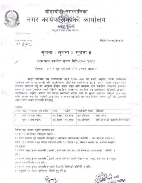 घोडाघोडी नगरपालिकाको अत्यन्त जरुरी सुचना ।