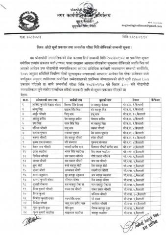 छोटो सूची प्रकाशन तथा अन्तर्वाता परीक्षा तोकिएको सम्बन्धी सूचना ।