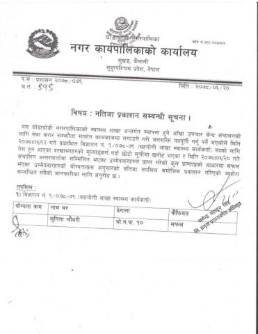 स्वीकृत नामावली प्रकाशन गरिएको बारे ।