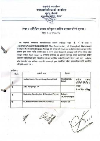 » प्राविधिक प्रस्ताव स्वीकृत र आर्थिक प्रस्ताव खोल्ने सूचना ।