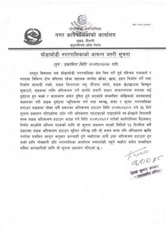 » सडक अतिक्रम हटाउने सम्बन्धी सूचना ।