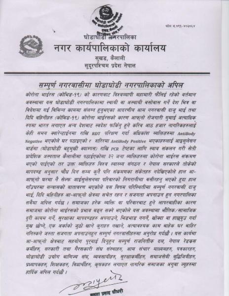 » सम्पुर्ण नगरबासीमा घोडाघोडी नगरपालिकाको अपिल