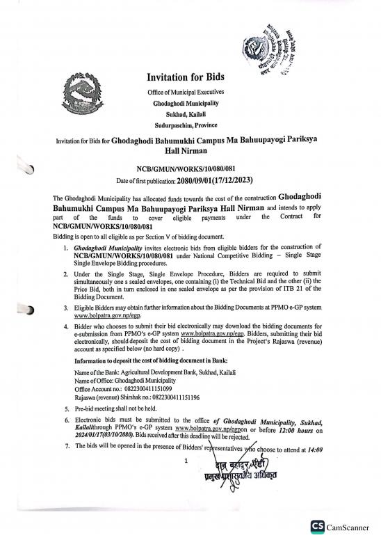 प्राविधिक प्रस्ताव स्वीकृत र आर्थिक प्रस्ताव खोल्ने सूचना ।
